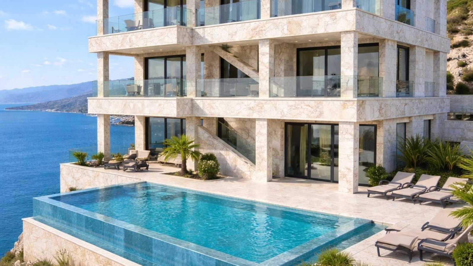 فيلا على العظم مؤلفة من ثلاثة طوابق، تقع في جزيرة D بموقع مميز مع إطلالة مفتوحة.