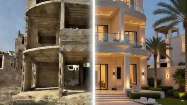 فيلا على العظم مؤلفة من ثلاثة طوابق، تقع في جزيرة D بموقع مميز مع إطلالة مفتوحة. هيكل إنشائي جاهز و